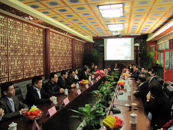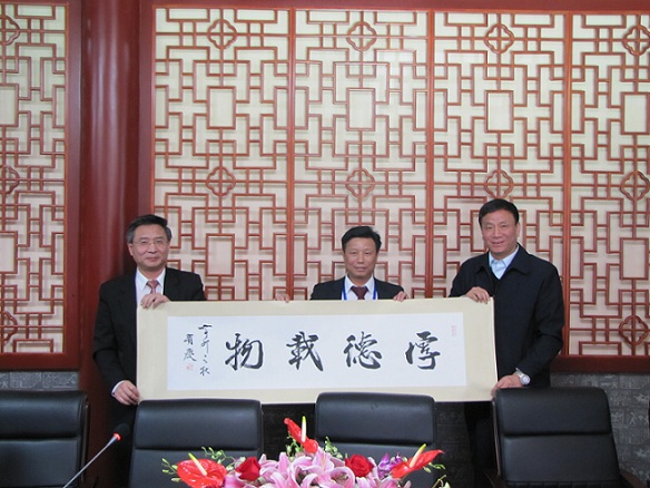 3月27日上午,代表团参观访问了北京市华侨服务中心。在侨味浓郁、干净整洁的四合院里,北京市侨联副主席马坚,北京市侨联党组成员、主席助理李红军以及北京市侨联联络维权部的有关领导与代表团进行了座谈。马坚副主席对代表团的来访表示热烈欢迎,他介绍了北京市侨联的历史、工作职能及开展的主要活动,介绍了北京市华侨服务中心的基本功能,并希望能与法华工商联合会开展进一步的交流与合作。代表团成员也纷纷发言,他们说法华工商联合会与北京市侨联有着深厚的友谊,北京市侨联为旅居国外的华人华侨提供了一个沟通合作的平台,他们衷心感谢北京市侨联给予的关心和帮助,他们愿意为国家、为家乡、为北京贡献更多的力量。李红军主席助理代表北京市华侨服务中心,向代表团赠送了书法作品“厚德载物”。